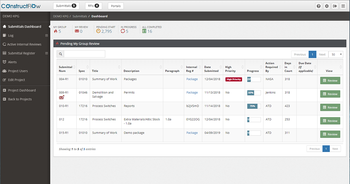 Design the review process and ConstructFlow will move your documents from team to team, based on you specifications